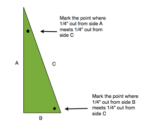 1. Make a template of your triangle shape – including seam allowance.