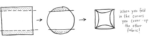 Let’s say you have some scrappy scraps that you want to use but only enough to make half of your circle pattern. If you have enough to make two halves (plus a little seam allowance), you can make a whole. Following a straight edge, sew the two pieces together. Then trace your circle on the patched together fabric, ensuring that your seam bi-sects the circle perfectly.