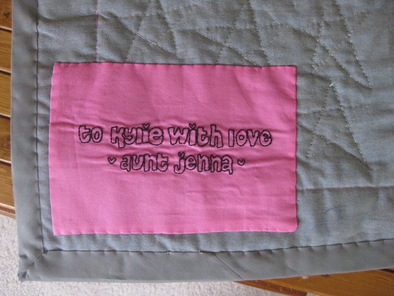 I do love my little embroidered patches, however : )   Yay for me being an aunt, and I hope my little niece spends lots of hours throwing awesome tummy-time parties on her new little mat (to be delivered at the end of this month when I meet my little squirt!).