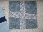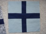 Lucia wants to make something to keep him snuggly and warm and hopefully in good spirits. Lucia called out for cross-blocks in masculine blues and grays. I made three and mailed them out to her this morning.