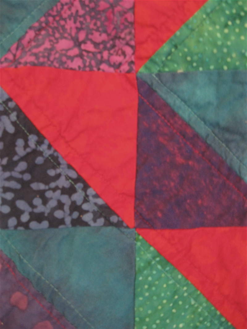 I call this quilt, “Party Time, Excellent!” There are at least two blocks that are flipped the wrong way, I discovered while quilting. If this quilt is a party, then these two blocks are your drunk friends who are apparently going to spend the night on your couch.