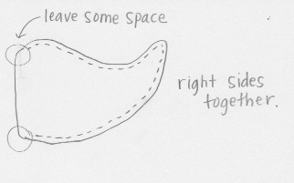 • Layer a batting ear and an interfacing ear together, good sides together, and sew all along the slopey ear sides.
