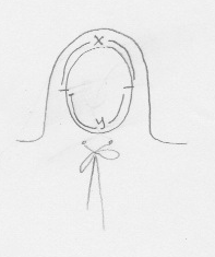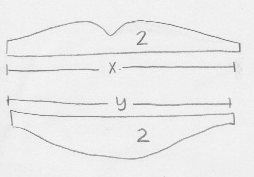 For making the lips, I like the look of a shiny fabric like an acetate. With your fabric folded so that you have 2 pieces of each shape (1 normal and 1 reverse) Cut out your top-lip shapes the length of X and your bottom-lip shapes the length of Y.