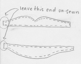 Good sides together, sew around the edges of the lip shapes, leaving one end open so the unit can be turned right-side-out.