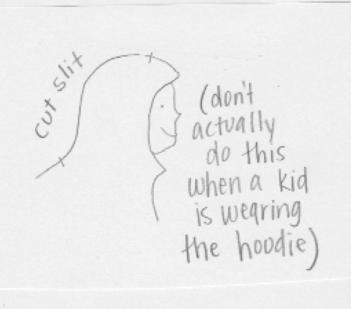 Sandwich the layers of tulle between the folded-over edges of the hooded sweatshirt. Top-stitch to hold the tulle into place and to close the slit in the hoodie.