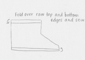 For each piece fold over the raw edges to the bad side of the fabric and top stitch.
