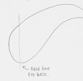 Now to make the base return to your pattern piece. Fold the pattern from point-to-point. Line the crease up on the folded edge of a piece of paper and cut out the shape of the small arch. This is the pattern piece for the base of your eye.