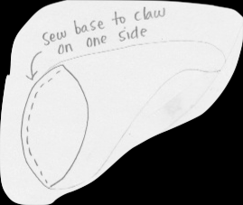 Cut out some claw-like shapes out of white fabric with a curved base. Sew them together, right sides together.