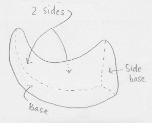 Lining up the fold from your claw pattern, trace the bottom cuve onto the folded edge of a piece of fabric and cut out a base unit.