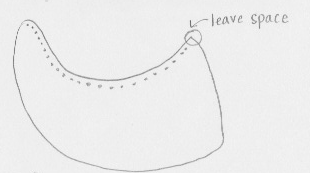Flip the eye unit to the other side, aligning the other edge of the unit to the base. Sew the points and a little bit of the arch, leaving a gap in the arch unsewn so the unit can be flipped inside-out.