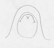 For each eye, cut out two of these shapes from fabric. If you want your eye to be all white, use two pieces of white fabric. If you want the back of the eye to match the hood of your costume, cut one from white, one from the color of the hood.