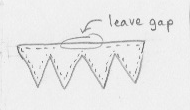Cut out a strip of teeth from two layers of fabric. Sew them all together (right sides together) except a gap where you will turn the unit inside out.