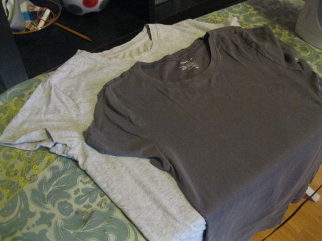 I took two t-shirts I wasn’t wearing very often and made one shirt I like a lot!