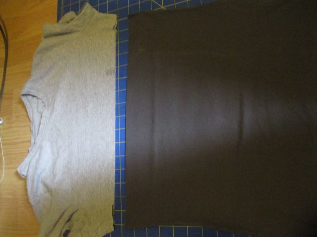 I cut about two inches down from the armpit on my top light-grey shirt, and then one and one-half inches down from the armpit on my dark grey t-shirt.