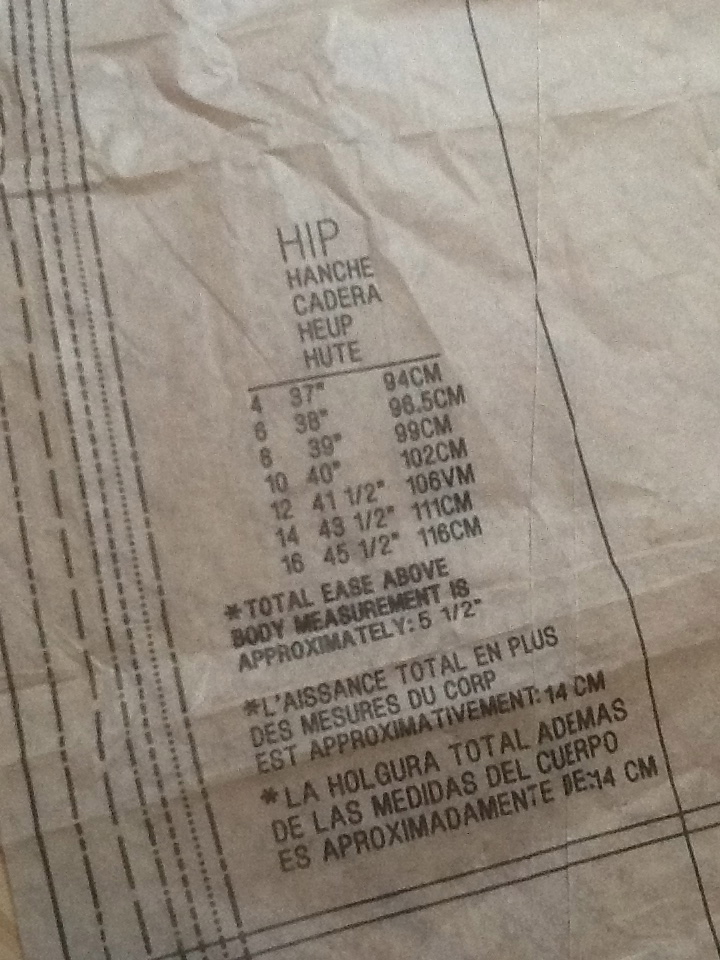 Now I buy a size 6/8 jean at Target, but here in pattern land that translates to a 14/18. My hip measurement was size 18, but I took a look at the pattern pieces and saw that there was over 5 inches of ease allotted in the pattern.