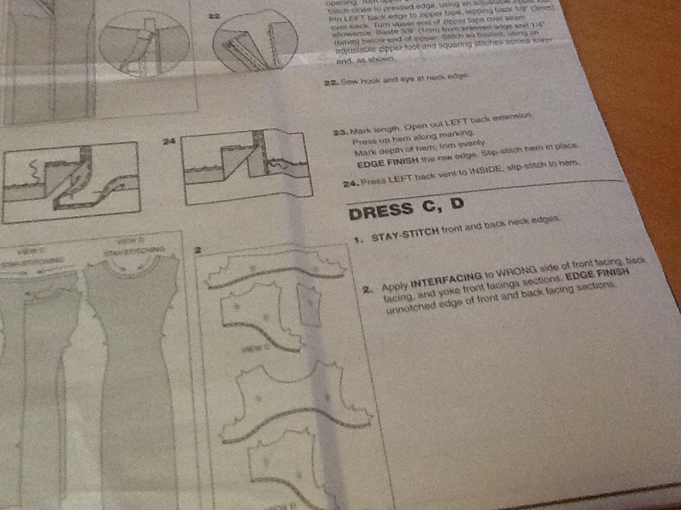 I moved Step 18 to AFTER STEP 22. That way I could deal with sewing the back vent and attaching my zipper without wrestling with the rest of the dress.