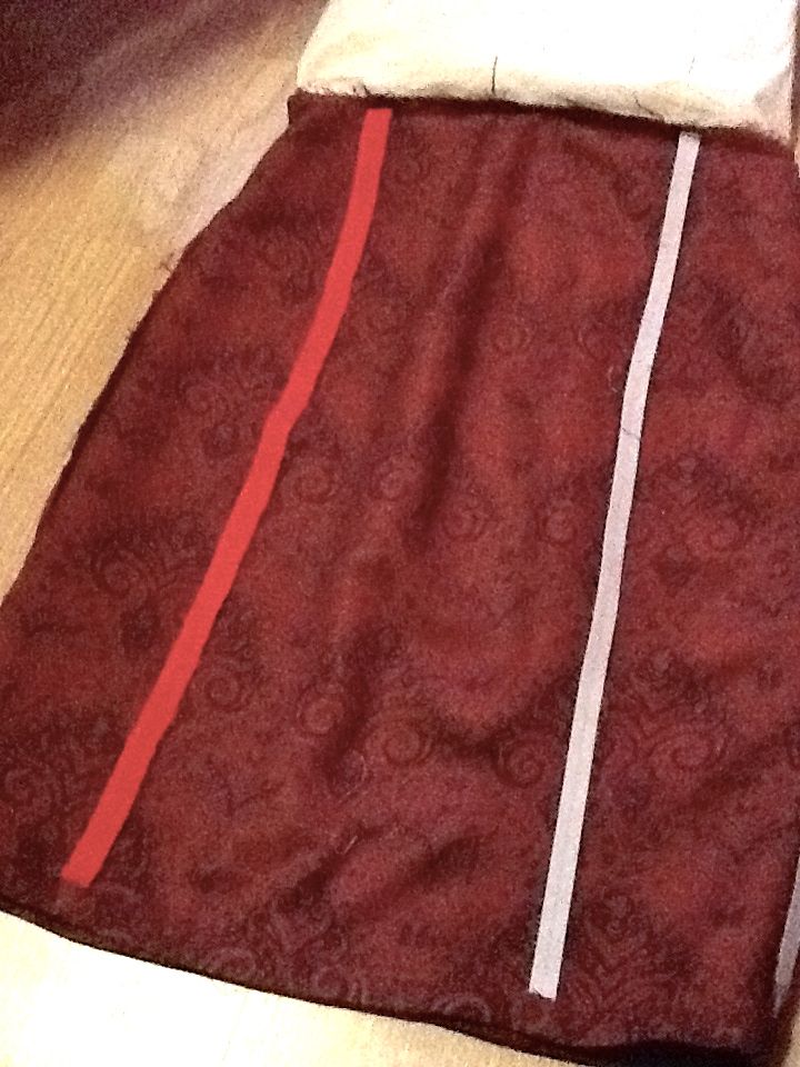 I don’t know what this means.  Above my pay grade!  But I think it’s saying to apply stay-tape to this garment.    Due to the fraying/fragile nature of my hand-woven fabric, I came up with a solution I think meets this criteria, but I didn’t apply my janky stay-tape until the skirt was assembled.  Read on below for more details.