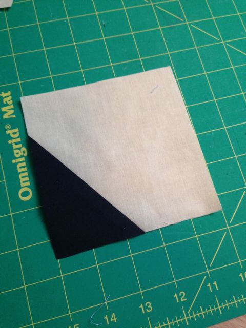 After you’ve ensured that your tree fabric is big enough to flush out the square, cut the excess background fabric and seam allowance so just 1/4 inch remains.