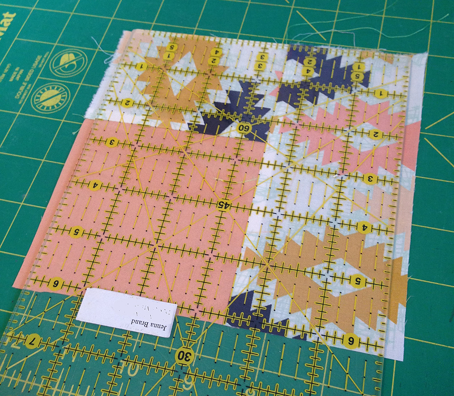 Once the blocks were made, I squared them to 6″ making sure that the inset square would be square, and the borders would be equal width.