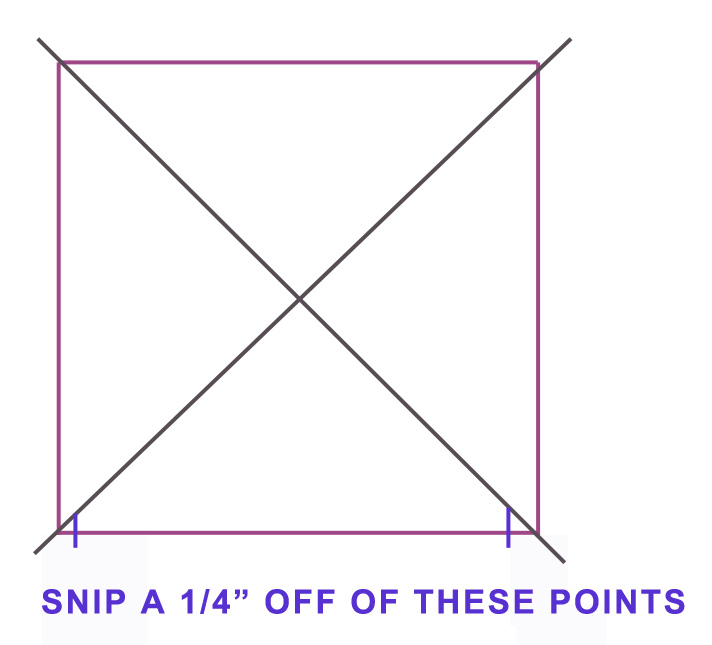 From a (Finished Block Size + 1 and 1/4)” square, cut four triangles.