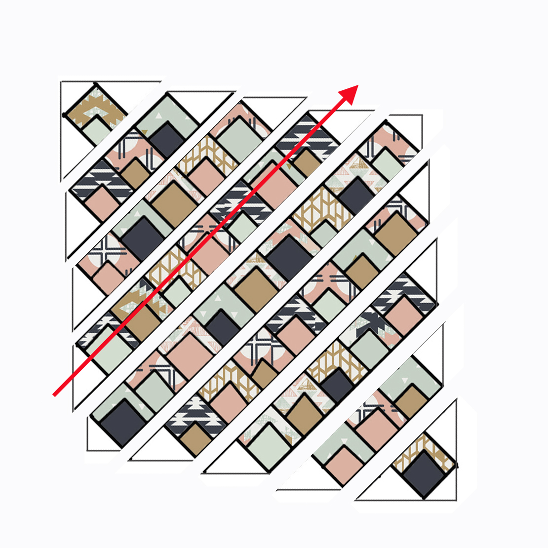 I placed my squares on my design wall and sewed diagonal rows together, attaching white triangles.
