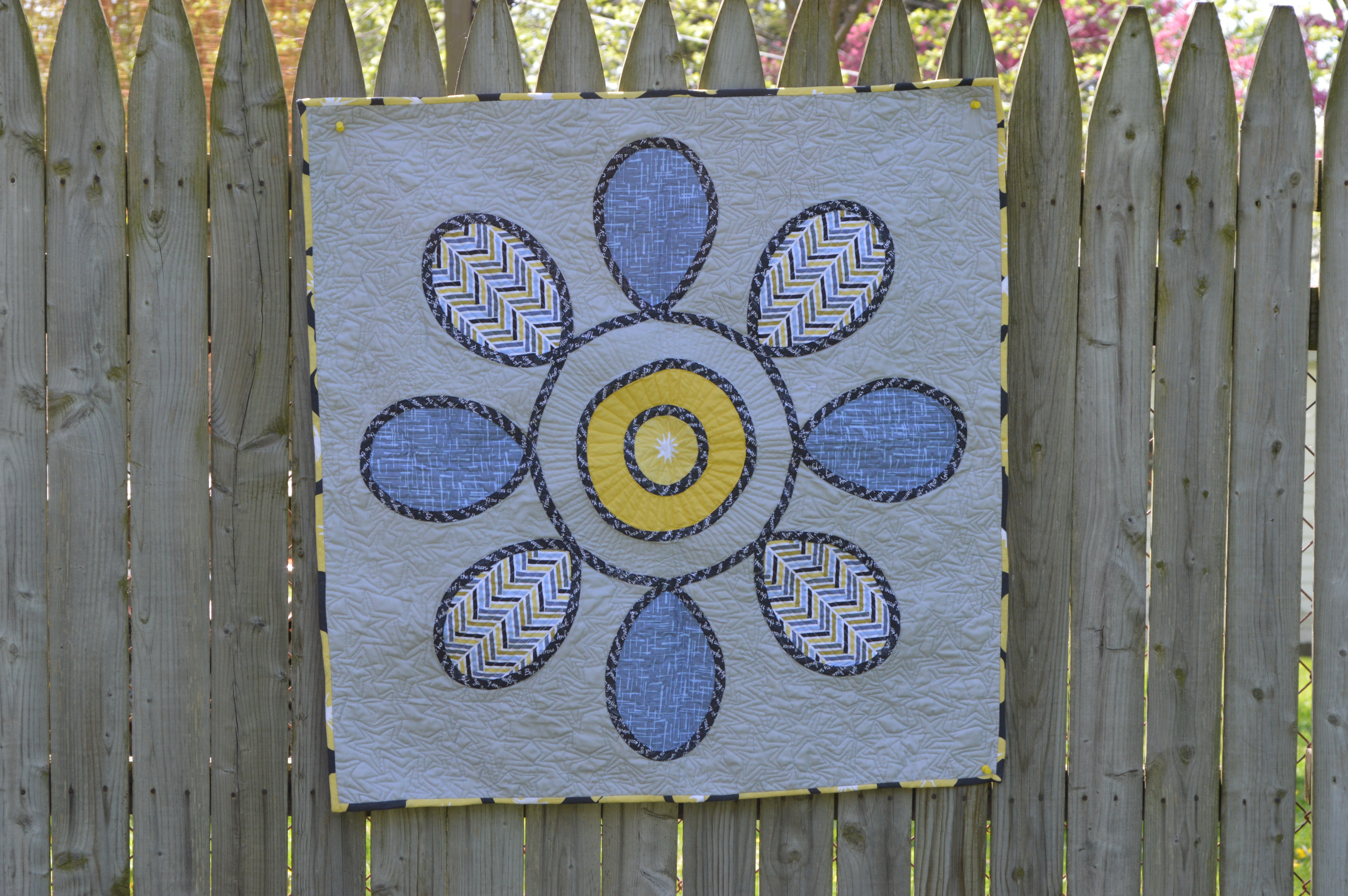Here’s my entry! A bias-tape, machine-appliquéd design representing a gentle, loopy gear: