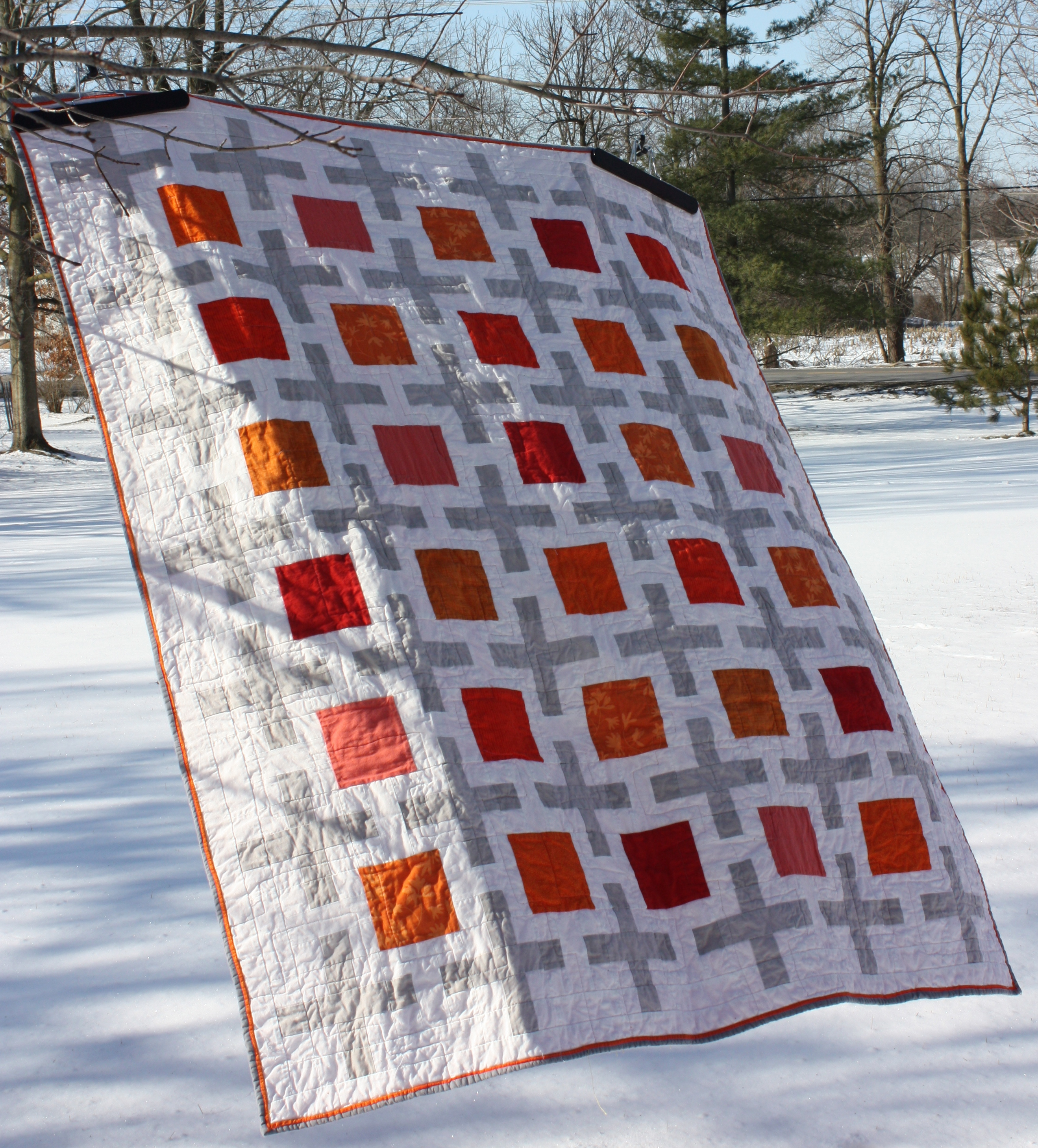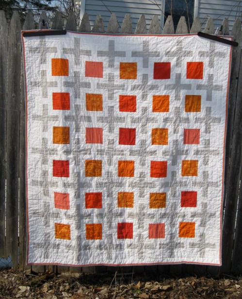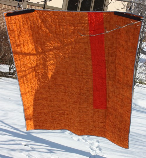 This quilt uses almost the entire line of Moda Crossweaves, Kona Snow, Kona Curry, and Free Spirit Gold.