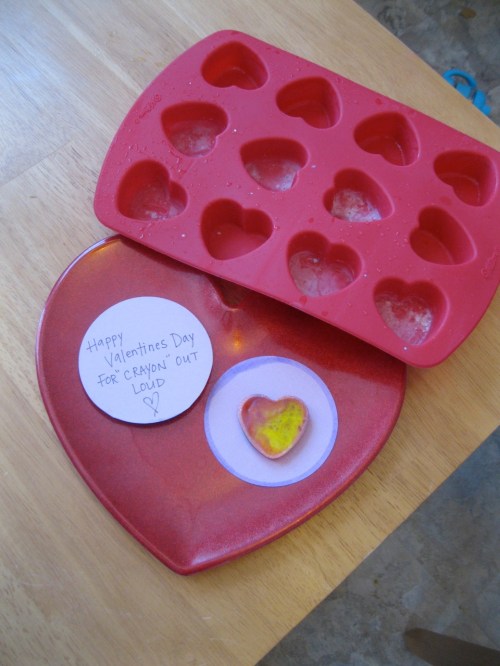 small crayon pieces bakes at 230 degrees F for 15 minutes in a candy-form