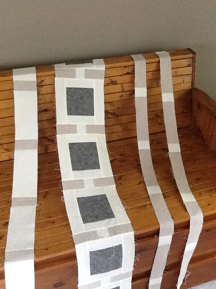 Here’s the back of my quilt! I wanted it to stay masculine so I used these fun strips. I also knew it’d do a nice job of complimenting my white-straight-line quilting.