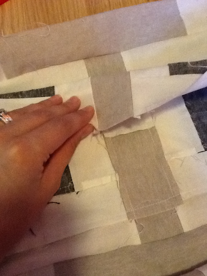 I carried these lines all the way to the edge of the quilt. In fact – the only places I marked the quilt-top were in the outside borders, making sure my lines stayed straight. Other than that, I just used the corners of my pieced squares as guides as I sewed!