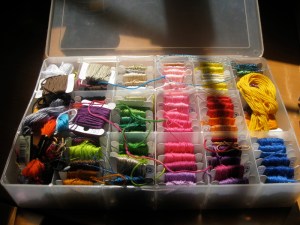 I was lucky enough to be gifted a huge collection of 100% cotton threads in a rainbow of colors from my mother. Ever since, I’ve added to my collection by purchasing threads on an as-needed basis.
