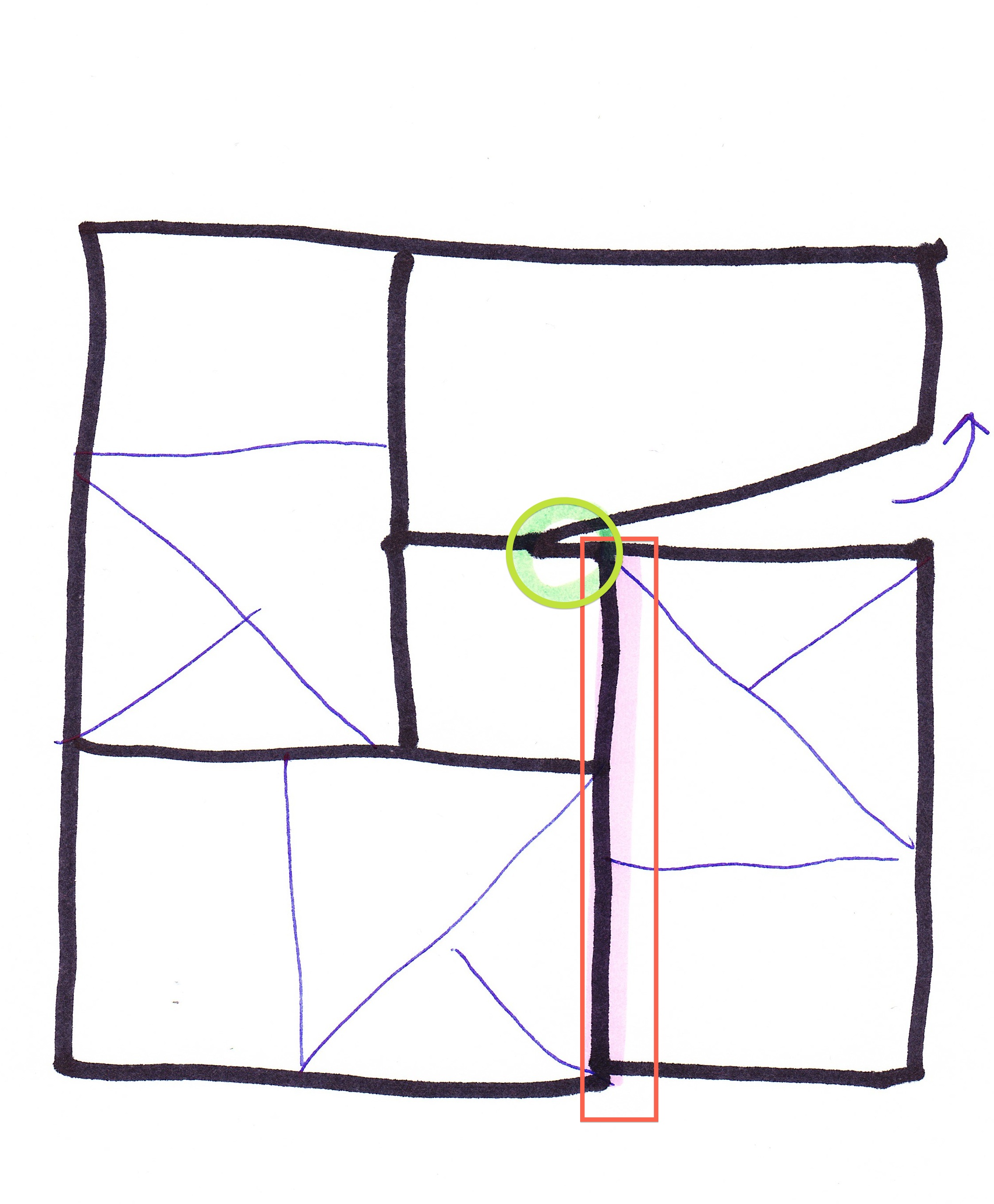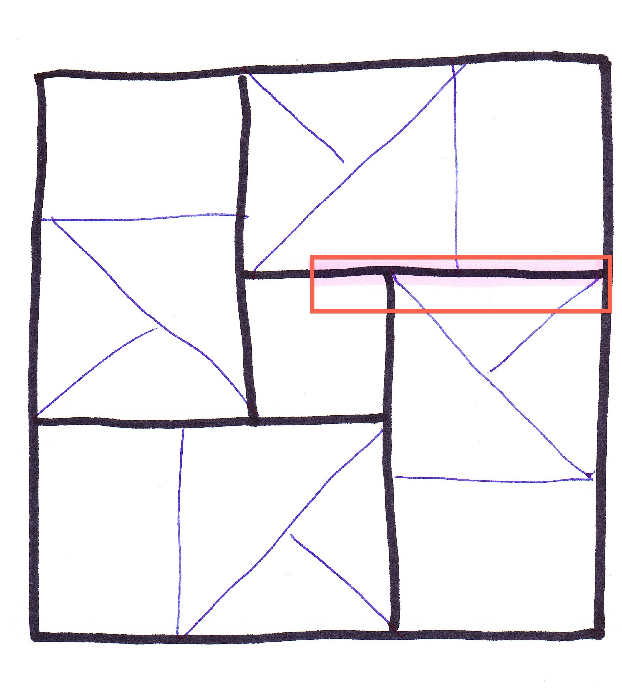 If you’d like, you could make the A square be of the same fabric as the D and E units. Just another option!